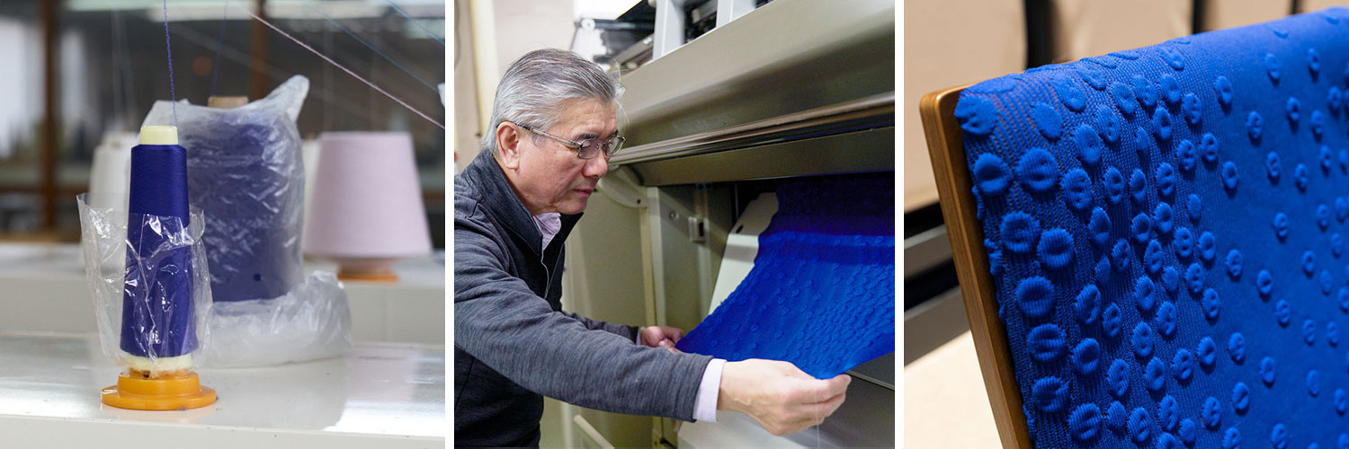 (澤村氏) 長谷川さんからお話をいただき、アパレルを主に生産している五泉のニットで劇場のイス張地の製作は大変そうだな、という印象と同時に、実現したら面白いものができそうだとの思いからチャレンジ精神が高まっていきました。