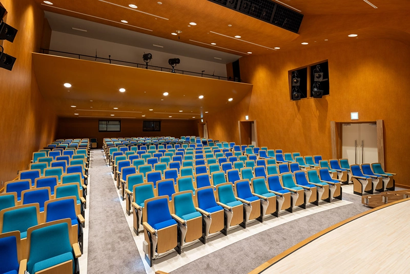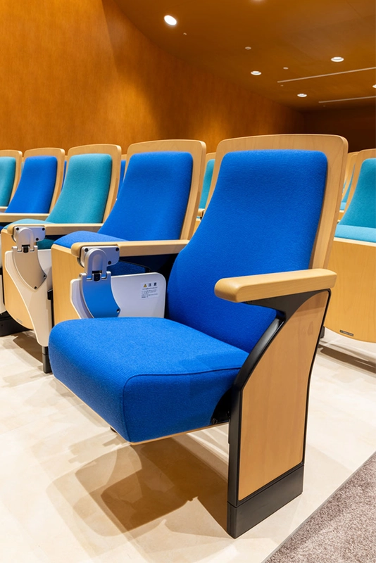 戦後日本を代表する建築家のひとりである大髙正人氏が設計を手掛けた本施設。発表会や講演会など、幅広い用途に使用されている小ホールのイス張地は、FABRIKO(ファブリコ)が手がけました。